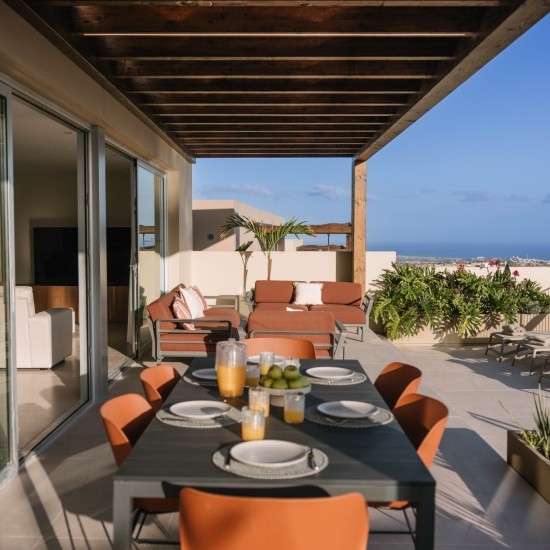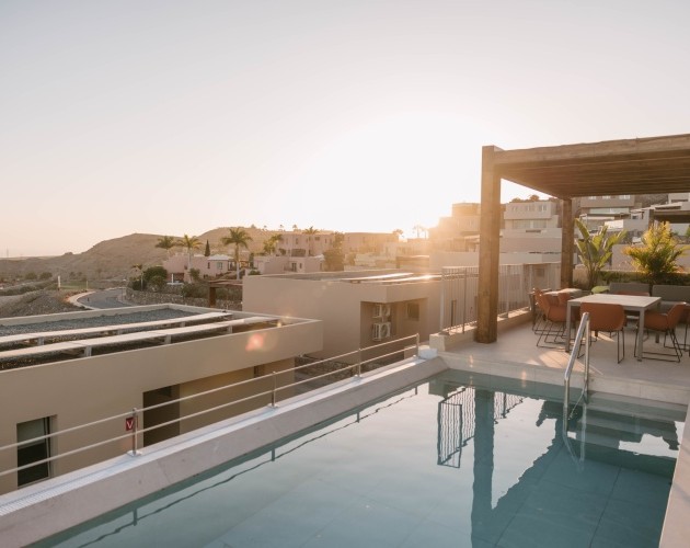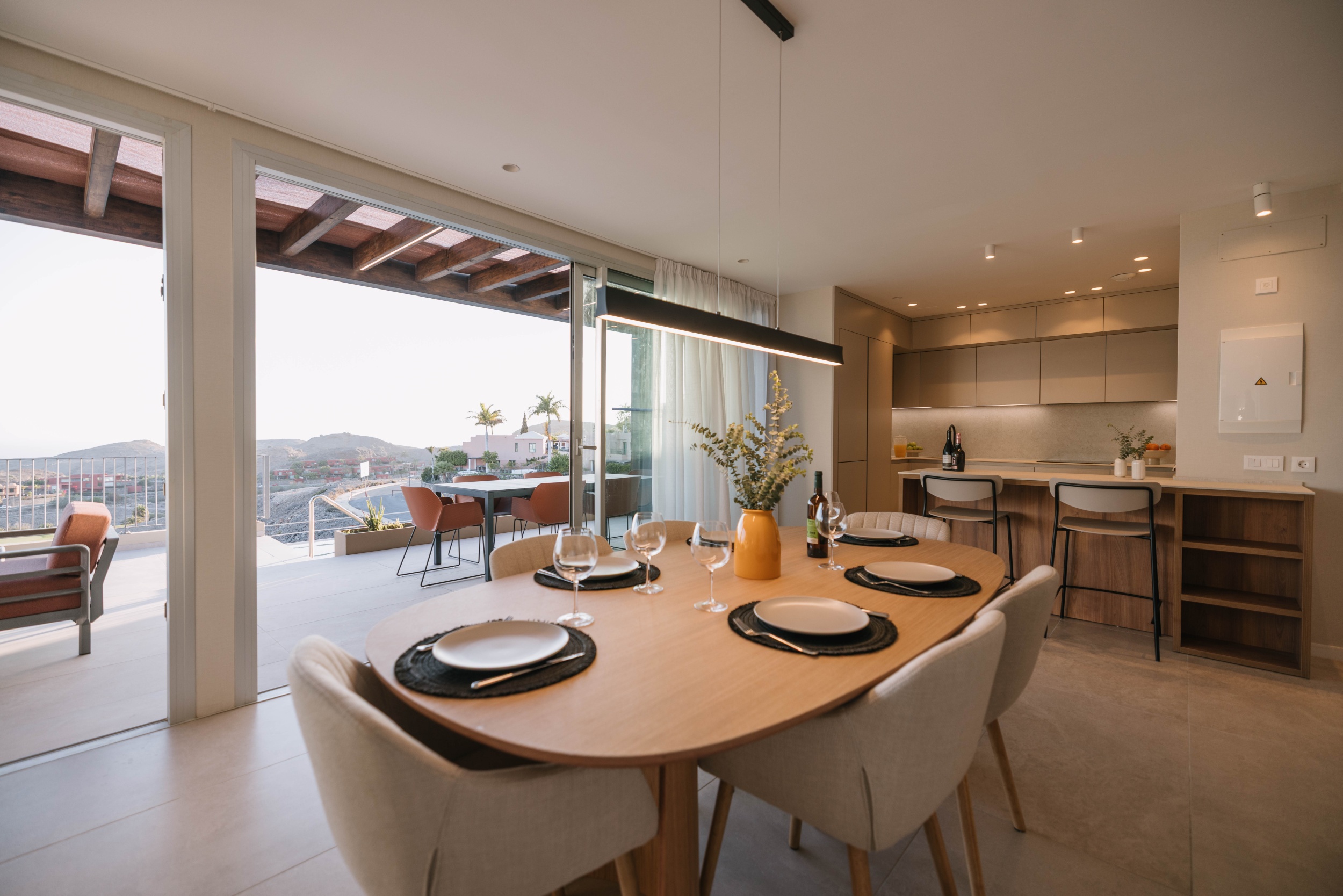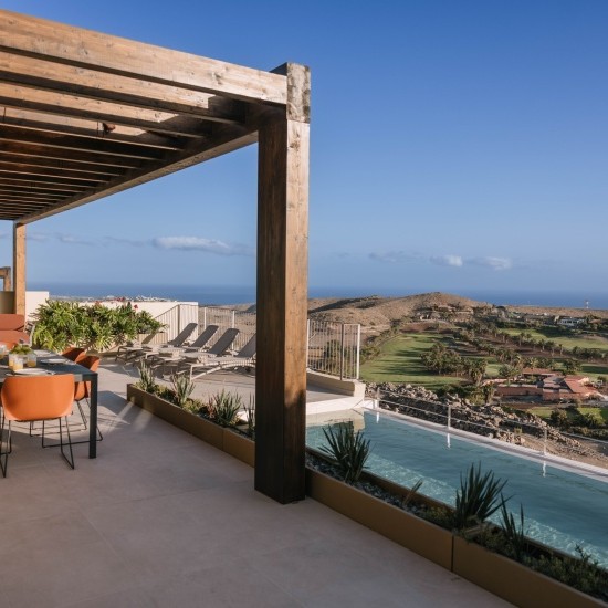 The most sought-after villas in the complex boast spectacular views of the golf course, the Atlantic Ocean, and, laterally, Maspalomas Beach. Spread over a single floor, they combine a modern and elegant design with a south-facing orientation that ensures sunlight throughout the day.