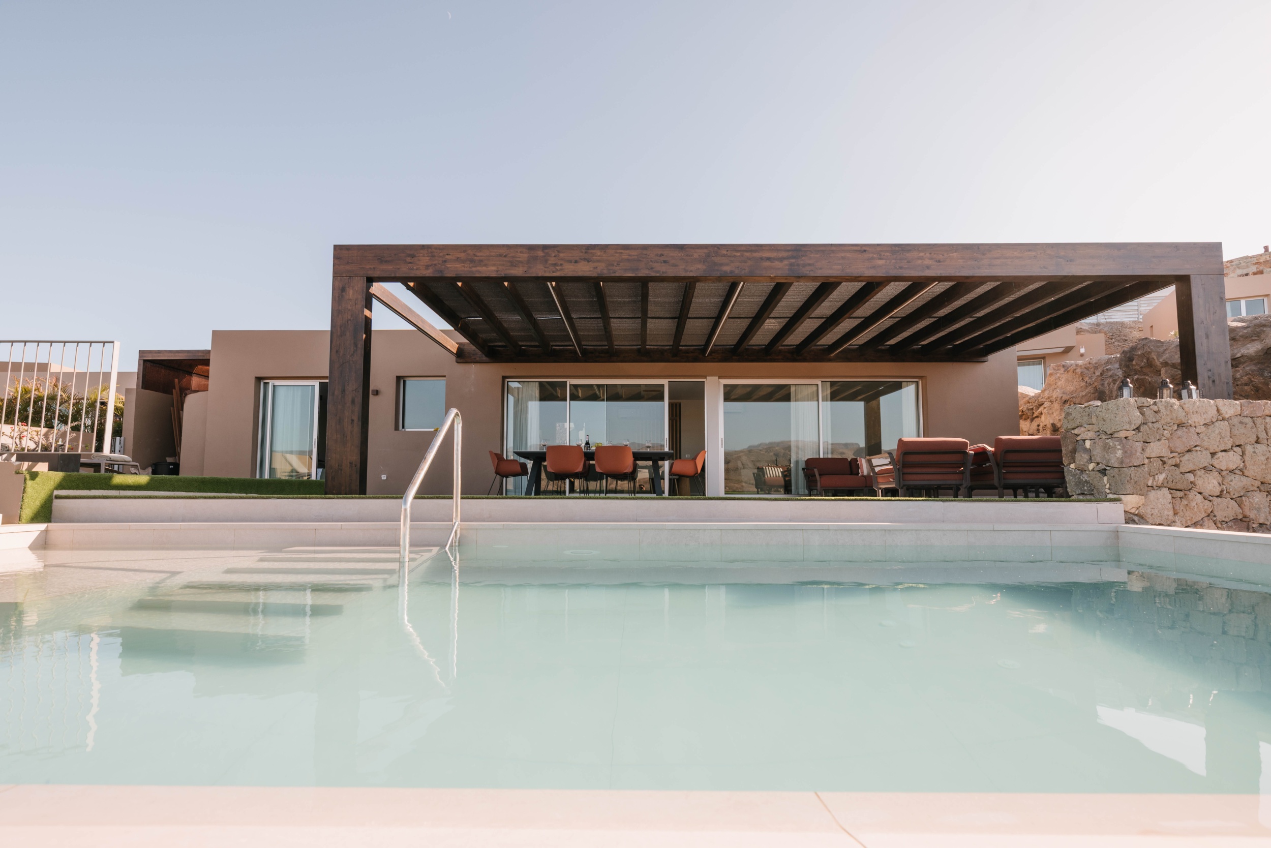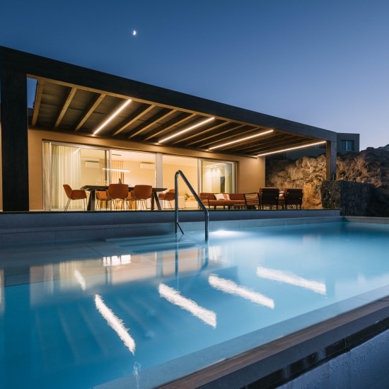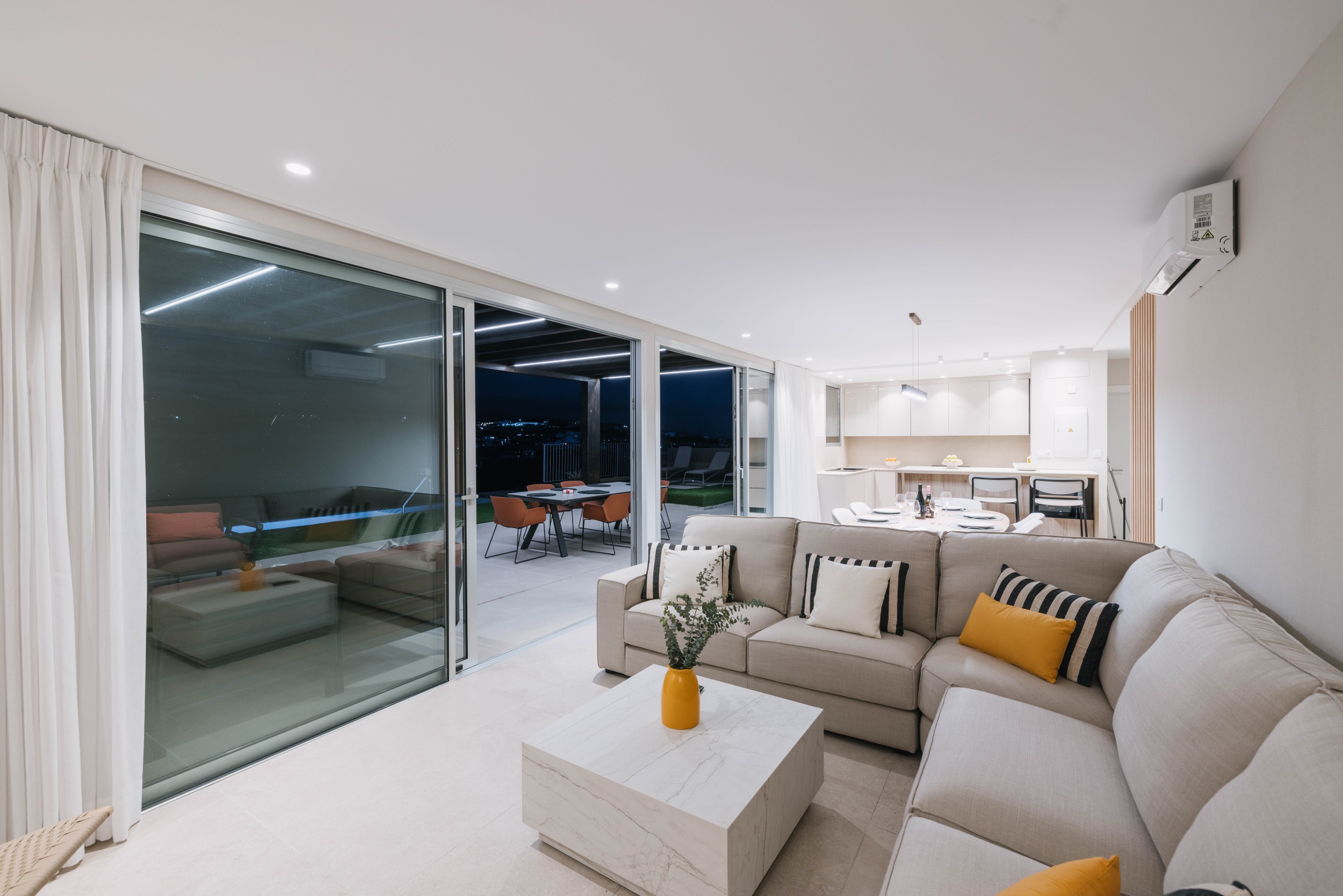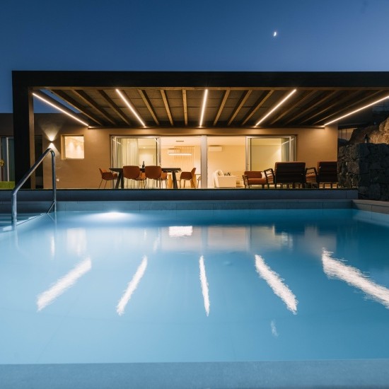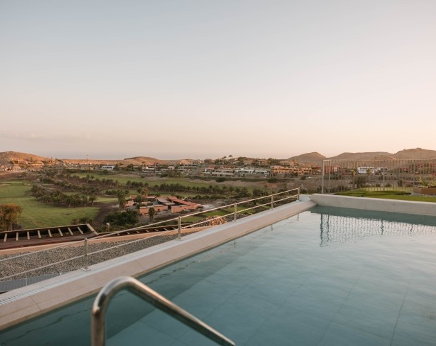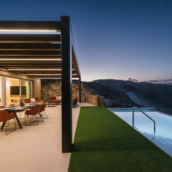 Unique villa with spectacular views of Roque Nublo and the mango plantation of El Salobre. Spread over a single floor, it has three bedrooms—two with double beds and one with two single beds—and offers two full bathrooms, an indoor toilet, and an outdoor toilet next to the pool, with capacity for up to six people. The villa faces north, ensuring sun on the pool until sunset, and has parking for four cars. Highlights include its south-facing terrace at the entrance, a pool with a sunbed area and spa-style jet, bathrooms with natural light thanks to skylights, and a cozy living room with an electric fireplace, ideal for enjoying a comfortable and elegant atmosphere.