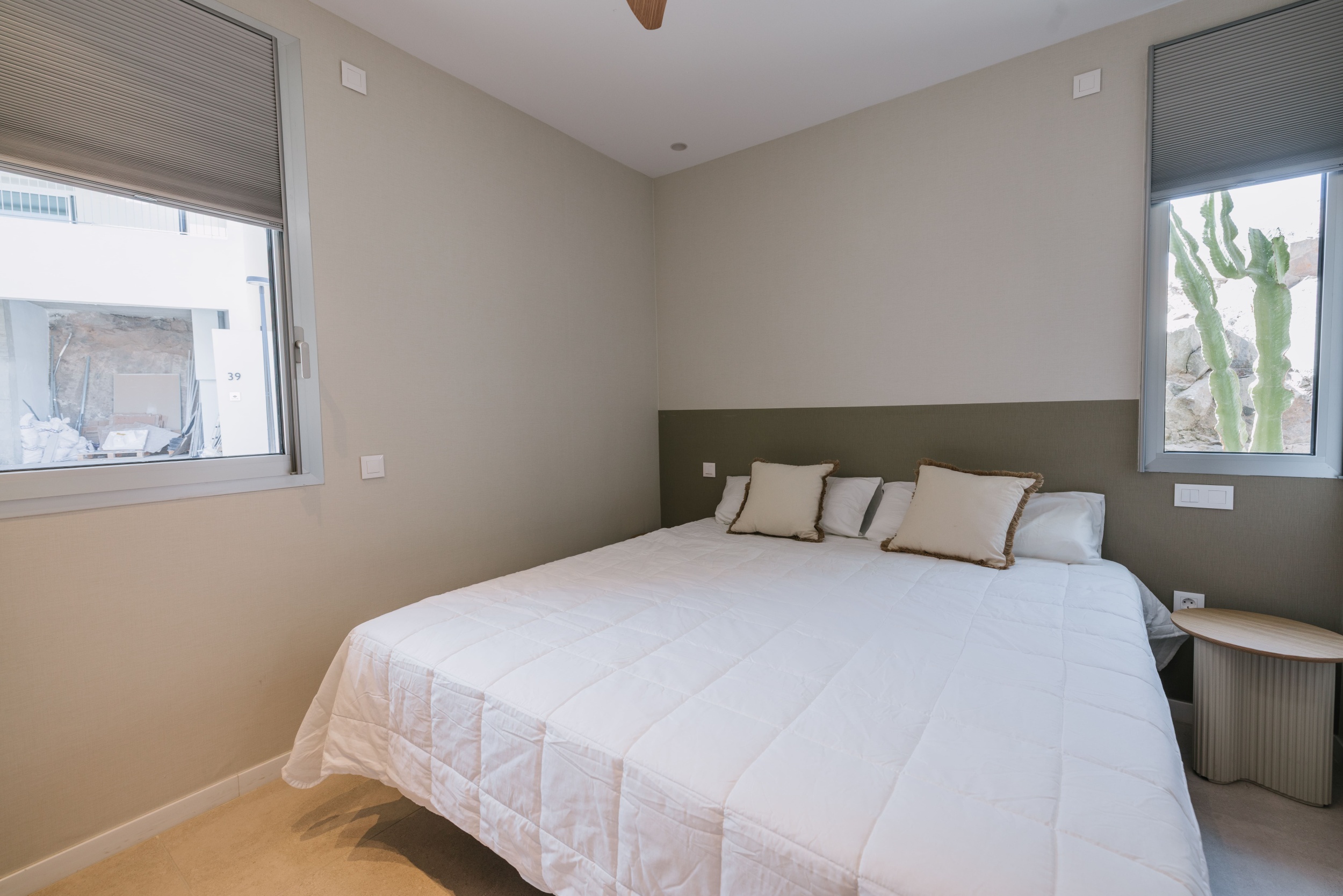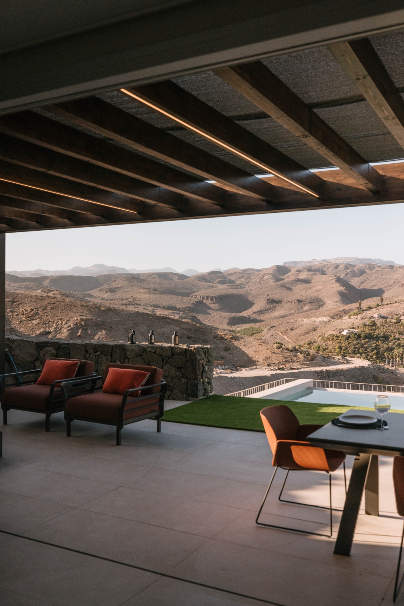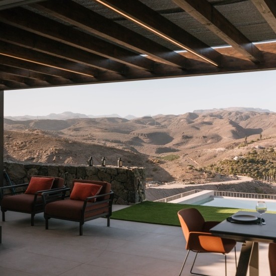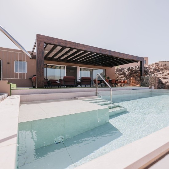Villa única con espectaculares vistas al Roque Nublo y a la finca de mangos de El Salobre. Distribuida en una sola planta, dispone de tres dormitorios —dos con cama de matrimonio y uno con dos camas individuales— y ofrece dos baños completos, un aseo interior y un aseo exterior junto a la piscina, con capacidad para hasta seis personas. La villa cuenta con orientación norte, asegurando sol en la piscina hasta el atardecer, y dispone de parking para cuatro coches. Destacan su terraza sur en la entrada, piscina con zona de hamacas y chorro tipo spa, baños con luz natural gracias a tragaluces, y un salón acogedor con chimenea eléctrica, ideal para disfrutar de un ambiente confortable y elegante.